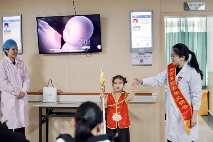 活动现场,产房副护士长施秋月领衔的“哪吒护孕天团”以中国传统神话人物哪吒为创意载体,在微信公众号开启《卸货不迷路指南》真人秀直播,打造出全场景、全周期的孕产知识体系。