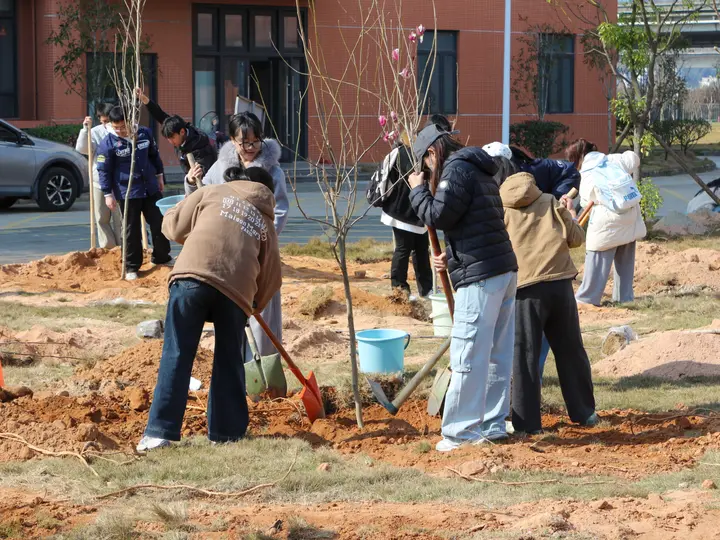 植树现场,大家分工协作、配合有序,挥锹铲土、扶苗填坑、提水浇灌,每一道工序都认真细致、一丝不苟。现场气氛热烈,劳动热情高涨,充分展现了宁师师生积极向上、团结协作的精神风貌。经过近一小时的辛勤劳作,百余株新栽的玉兰树苗在校园安家落户,昂首挺立,在春风中焕发出勃勃生机。