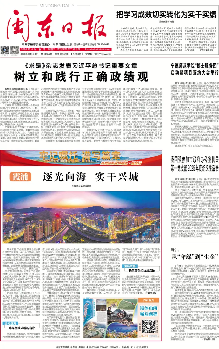 殷殷嘱托激励人心,砥砺奋进正当其时。习近平总书记在宁德工作期间曾“六进宁师”,寄予“发挥高校人才聚集作用,服务地方经济、社会、文化建设”等殷切希望。站在新的历史起点上,校地双方将牢记嘱托,深化产教融合,加强科研攻关,壮大人才队伍,不断提升教育对宁德经济社会高质量发展的支撑力、贡献力。