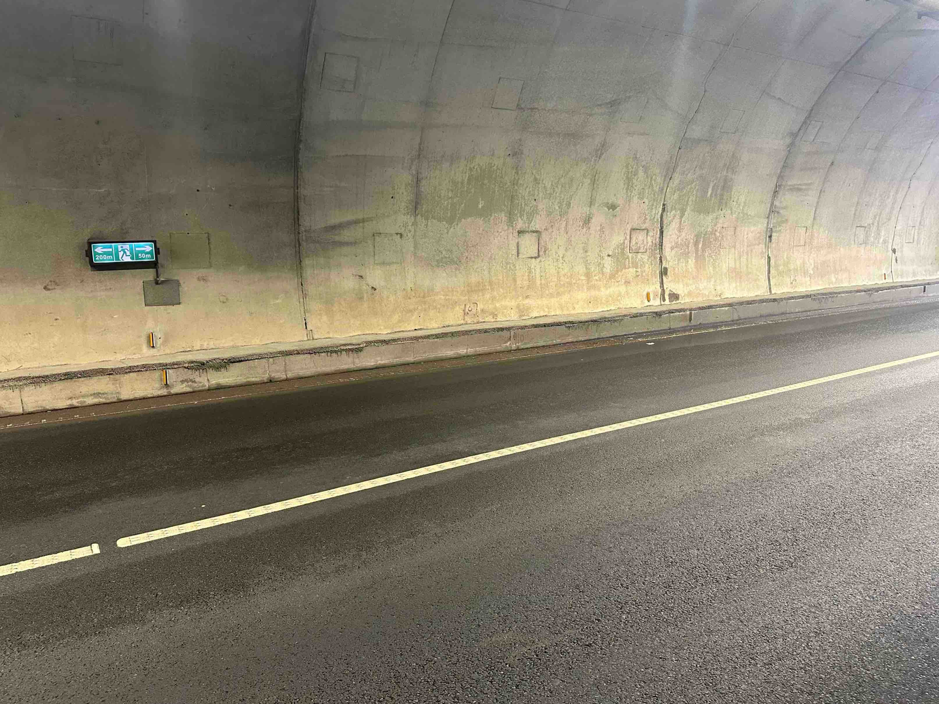 该公司养护技术人员告诉记者,早在2022年的日常巡查中发现冈顶山隧道口超车道出现部分积水后,就对排水渠进行疏通处置,后续观测未再出现积水现象。本报记者反映后,4月17日,经再次组织人员现场查看,初步判断为横向排水碎石盲沟出现钙化并堵塞,造成雨季时路面结构横向排水不畅,导致路面反渗。据了解,该公司年初已将路面渗水处置工程列入计划,将在近期开展整治施工,通过在隧道路面下埋设横向排水管,并与隧道原防排水系统连接,引排路面积水。